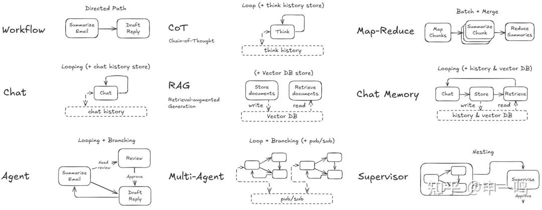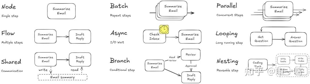 Agent Design Patterns - 图源: PocketFlow Github Repo