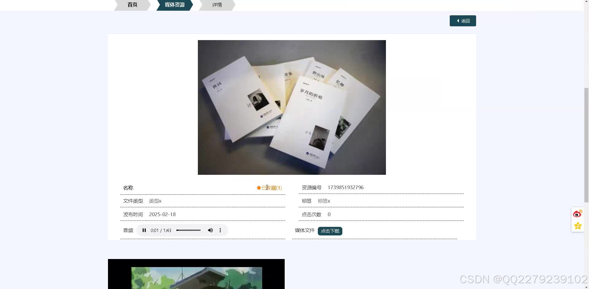 python媒体资源管理系统音频视频(源码+文档+运行视频+讲解视频)
