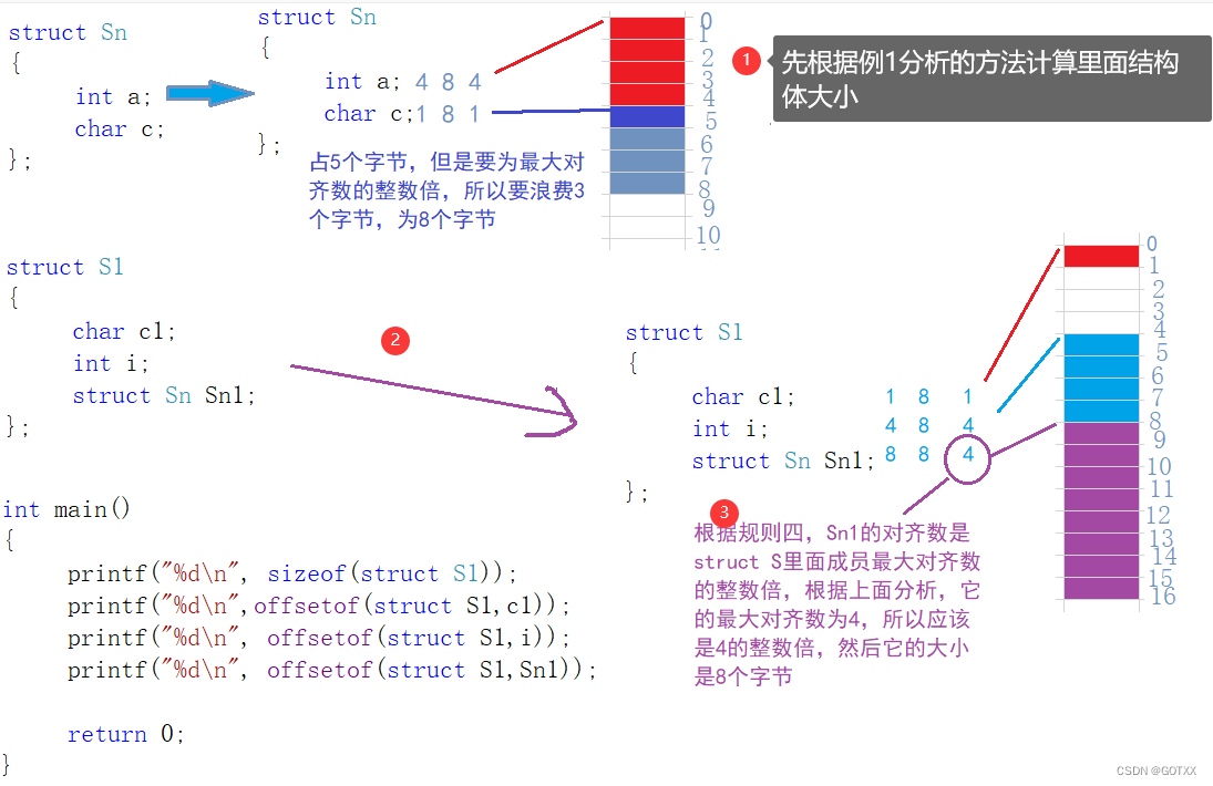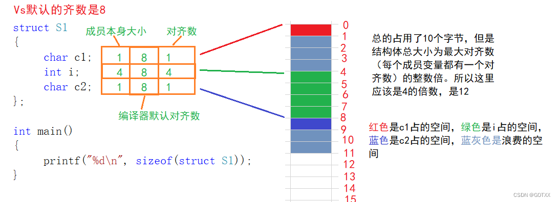 这是为什么呢?这就讲到结构体的对齐规则了;