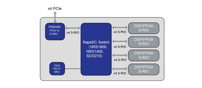系统设计人员需要大量的 DSP或者 FPGA来执行编码/解码/转码操作,或者对大型数据阵列进行 FFT(快速傅里叶变换)。RapidIO协议最适合这种 DSP/FPGA集群要求。在此类应用中,设计人员需要在PCIe网络和RapidIO网络,DSP或FPGA集群之间建数据通道。JXW721非常适合这种应用场景。