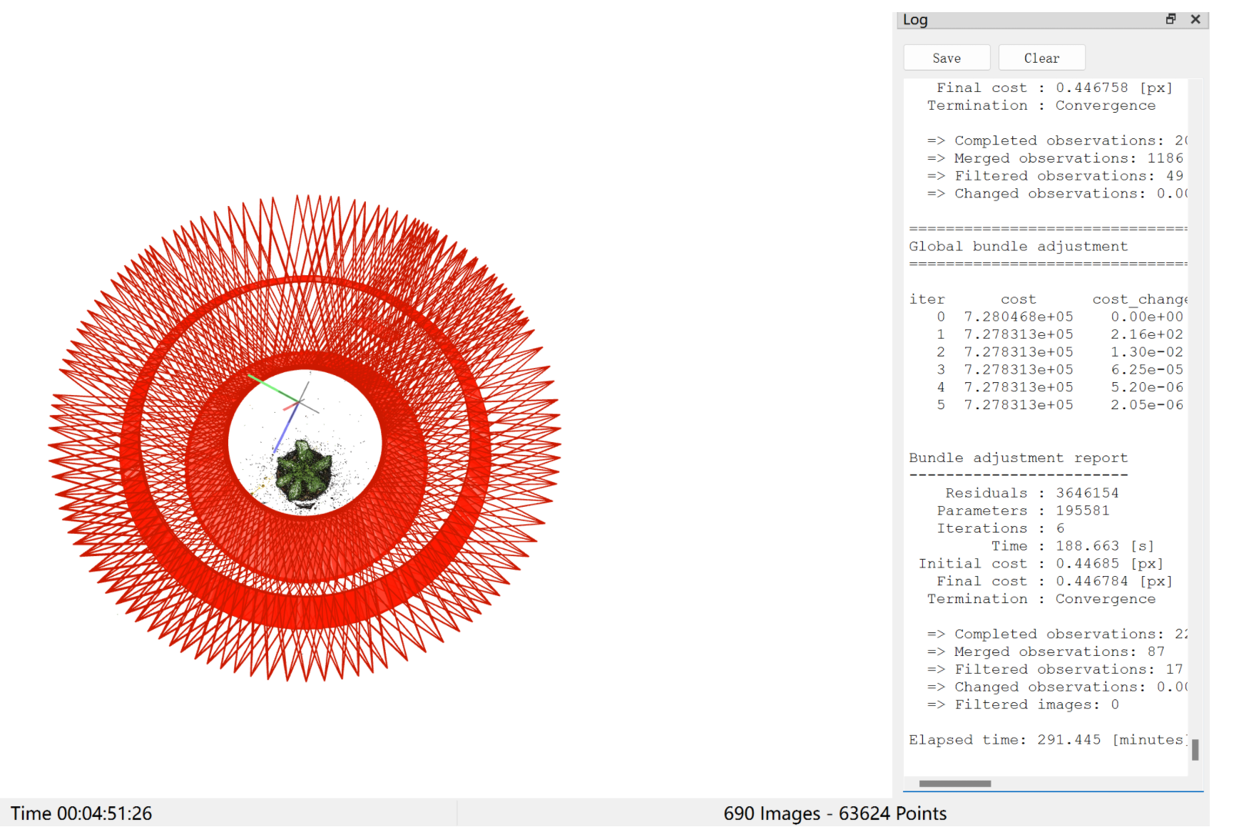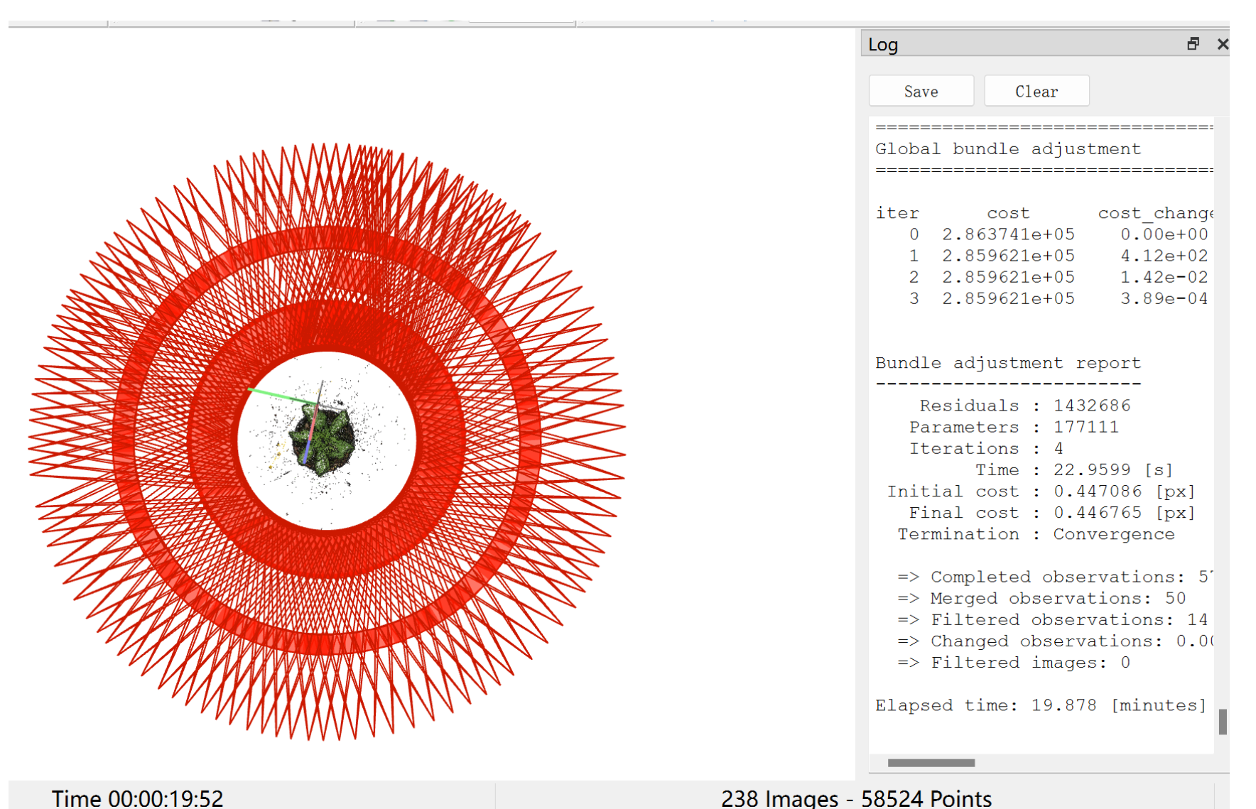 重建完毕后,得到如下图,通过右下角Images和Points可以大致判断是否重建成功。