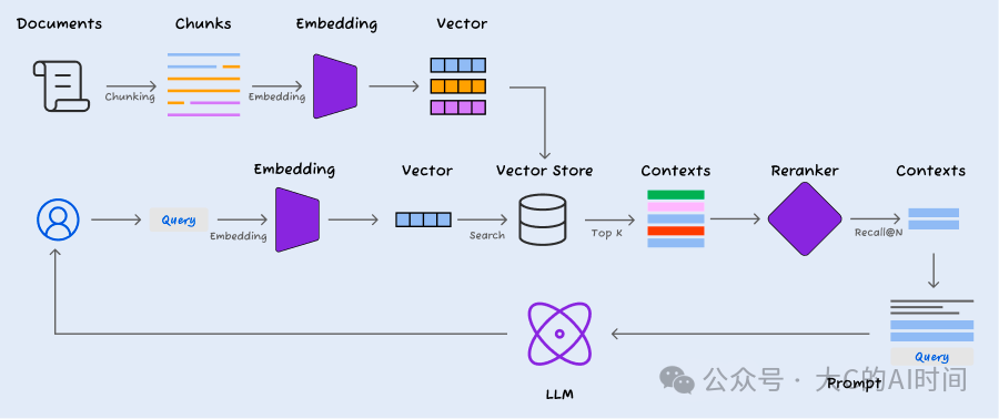 我们将 RAG 流程解构为两个关键阶段: