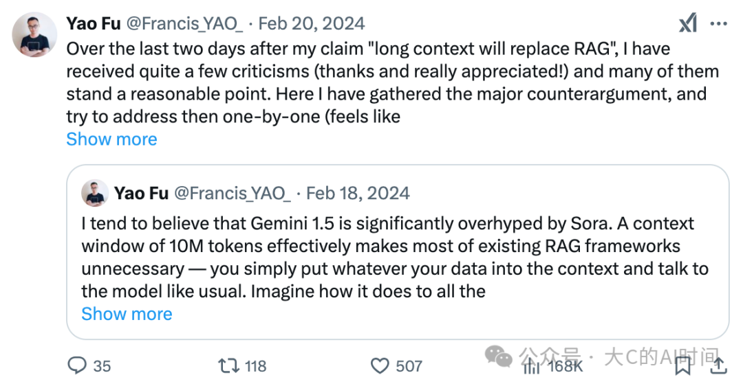 2024年初 X 上 Long Context replace RAG的讨论