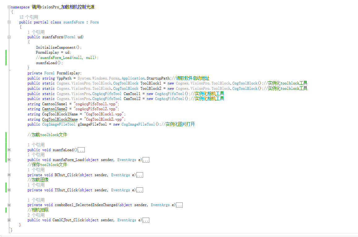 - 命名空间引用:引入必要的 VisionPro 命名空间,这样才能使用其中的各类工具和功能。