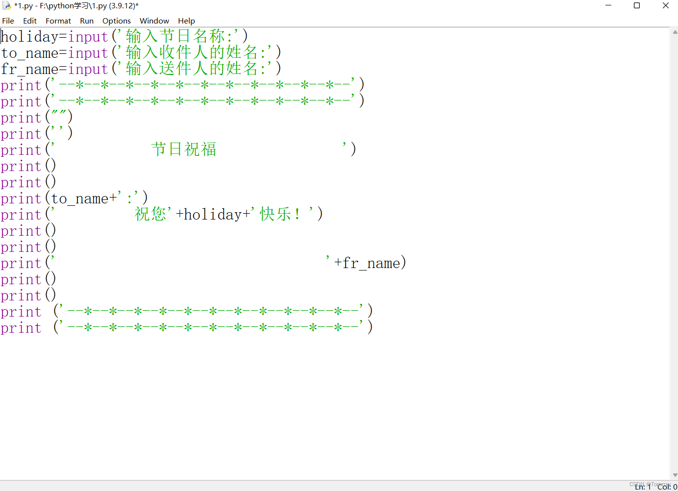 print(' 节日祝福 ')
