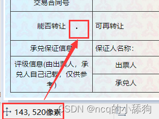 接下来,我们需要分析发票的内部内容,分析下图可知,我们需要获取以下几个数据内容:“出票日期”、“汇票到账日期”、“票据号码”、“收款人”、“票据金额”、“出票人”,可以通过画图软件获取精准定位。