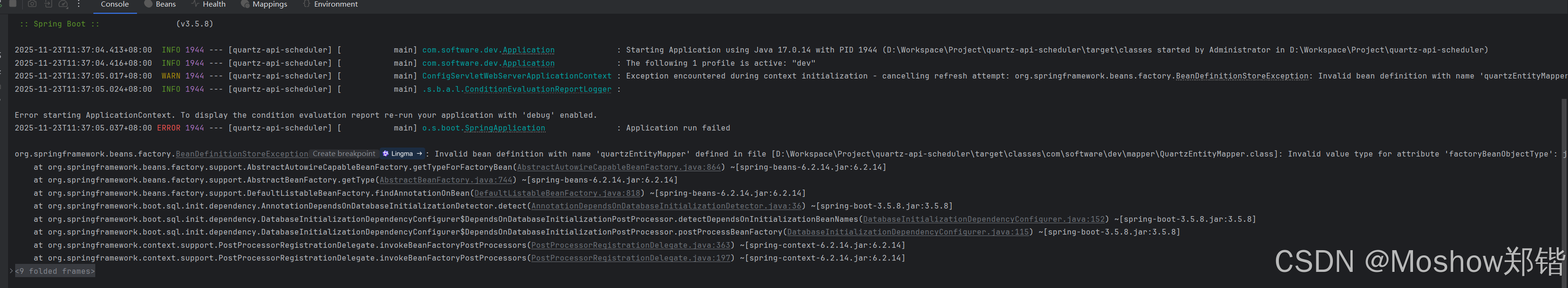 2025-11-23T11:37:05.037+08:00 ERROR 1944 --- [quartz-api-scheduler] [ main] o.s.boot.SpringApplication : Application run failed