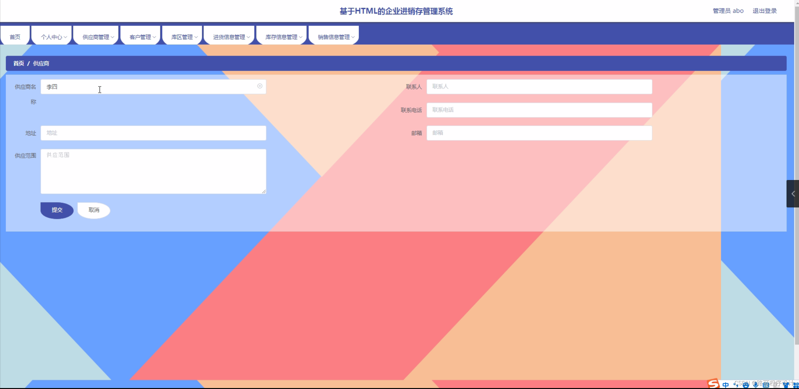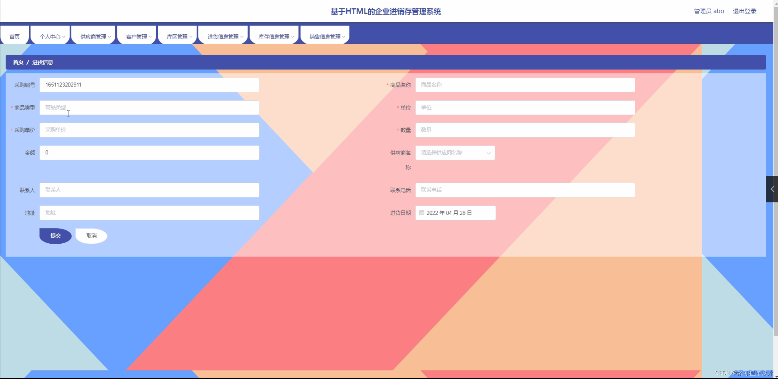 在当前市场环境下,企业面临着激烈的竞争压力,如何提高企业的运营效率和管理水平成为了企业发展的关键。而进销存管理作为企业日常运营的重要组成部分,其管理水平直接影响到企业的经营效益。因此,开发一套基于HTML的企业进销存管理系统,有助于企业实现信息化管理,提高企业的竞争力。