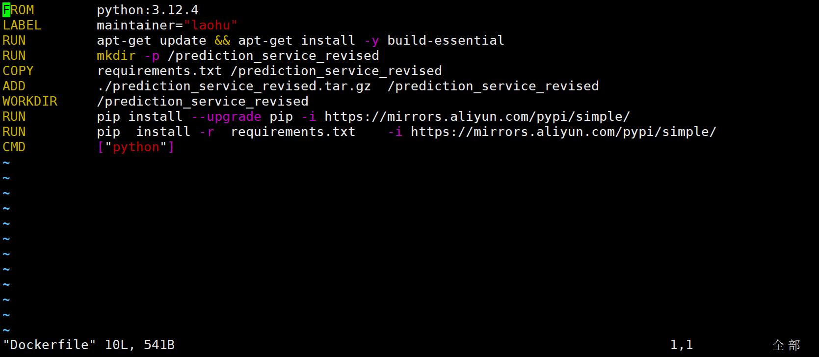 RUN mkdir -p /prediction_service_revised ##创建容器内的工作目录