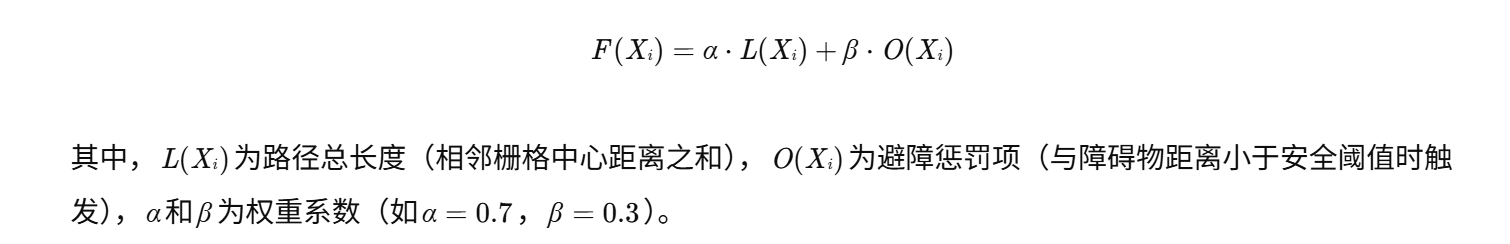 路径规划目标为最小化路径长度和碰撞风险,适应度函数设计为: