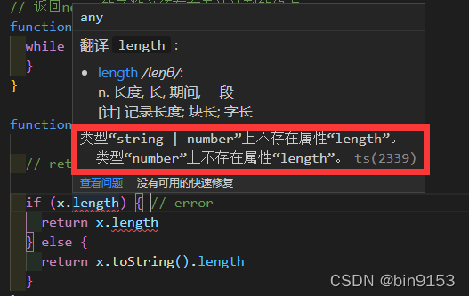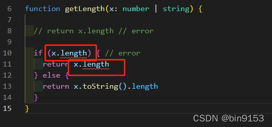 分析:这个案例中,x可以是string也可以是number,当是string时是有length属性的,合理。当是number时,没有length属性他就会给报错,也可以看到他的机理是帮咱们进行推测,有不合理就报错。官方叫类型推断。