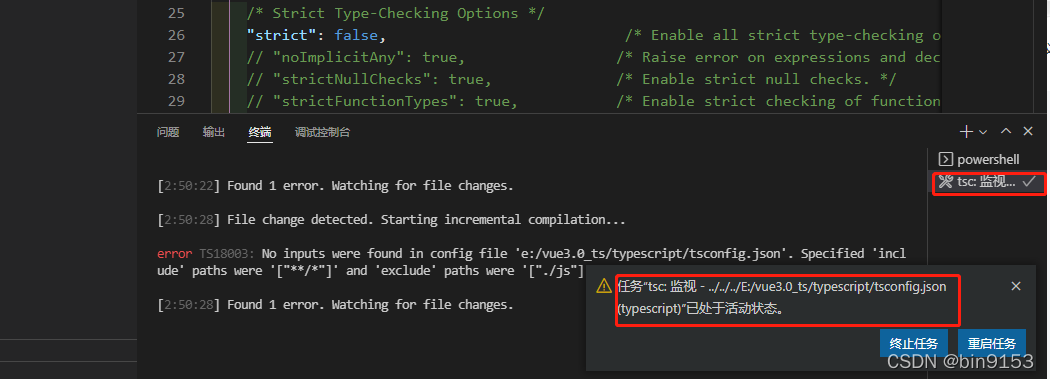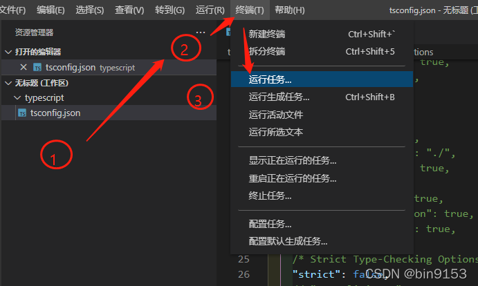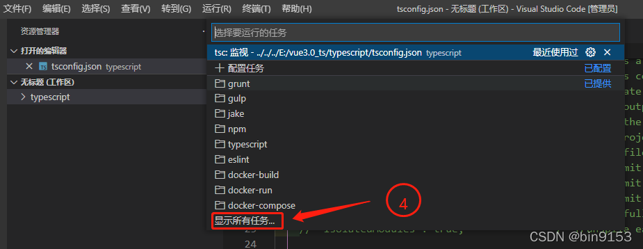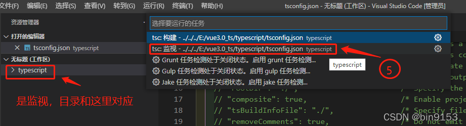 终端 - 运行任务 - 显示所有任务 - tsc 监视 目标配置的文件路径