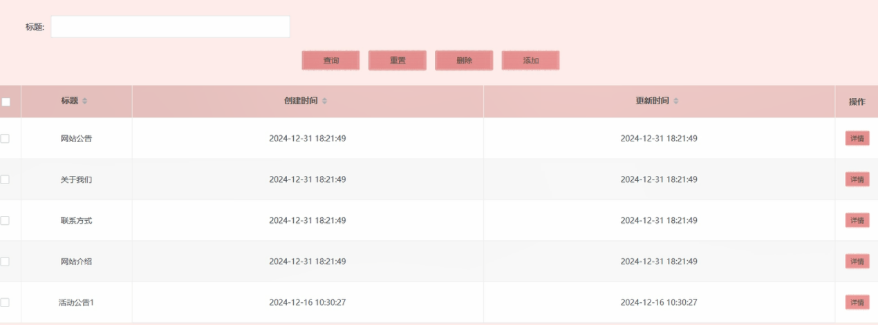 管理员可以创建、编辑和发布活动公告,管理公告的内容、发布日期以及状态。管理员还可以删除过期或不再需要的公告。此功能有助于确保活动信息的及时发布和管理。活动公告管理界面如图5-9所示。