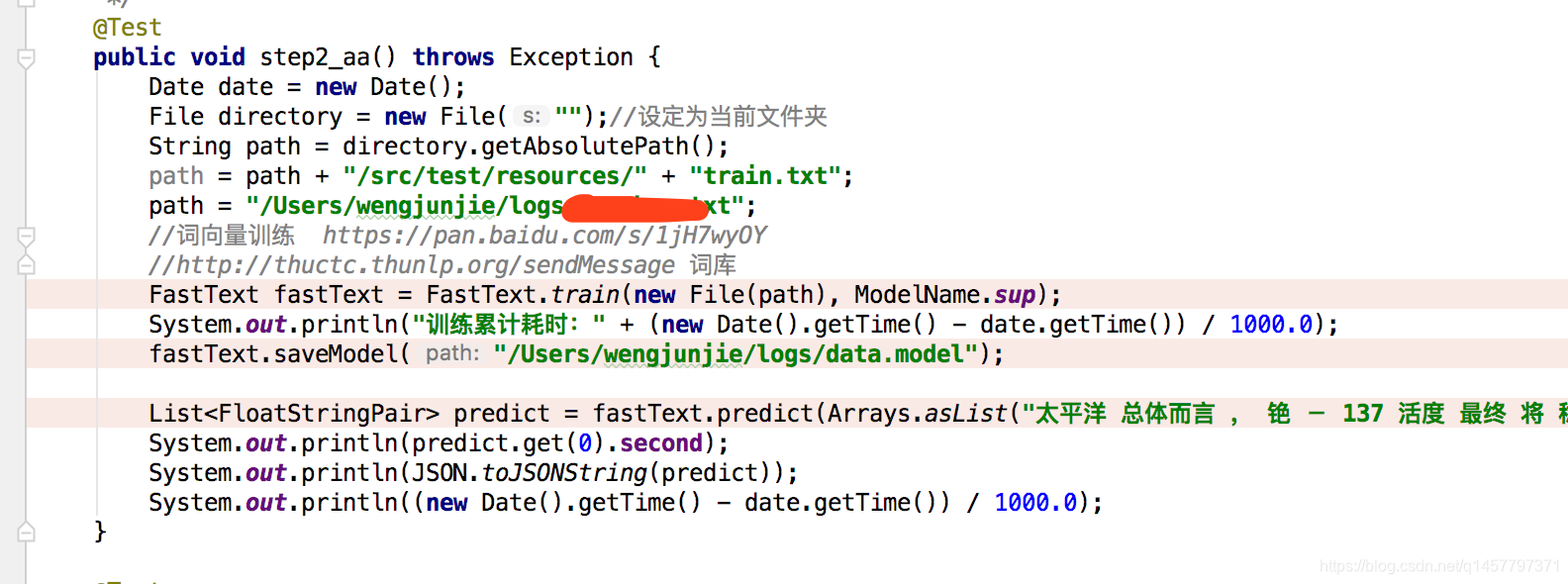于是选择了fasttext4j ( facebook开发源代码,底层是c++,做的jar)