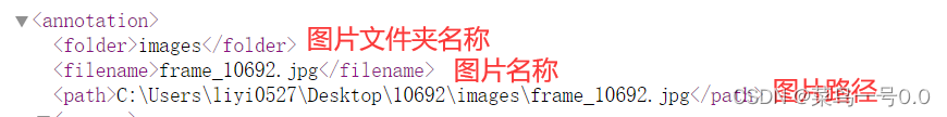 然后我自己标注了一张图片,查看两个xml文件有什么不同,发现有如下不同:用我的labelImg标注产生的xml文件的开头包含对应的“图片名称”和“图片路径”,而我从网上下载的数据集却缺少这两项,以致于图片和xml无法匹配,无法在labelImg中显示标注信息。如下图所示:frame_10692是自己标注的一张图片,可以显示bbox,flv2是网上下载的,不能显示。