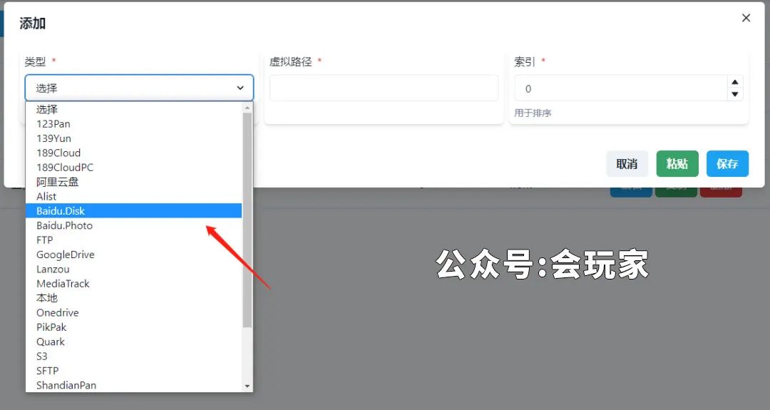 6.选择自己想要添加的网盘,我这里以百度网盘为例。