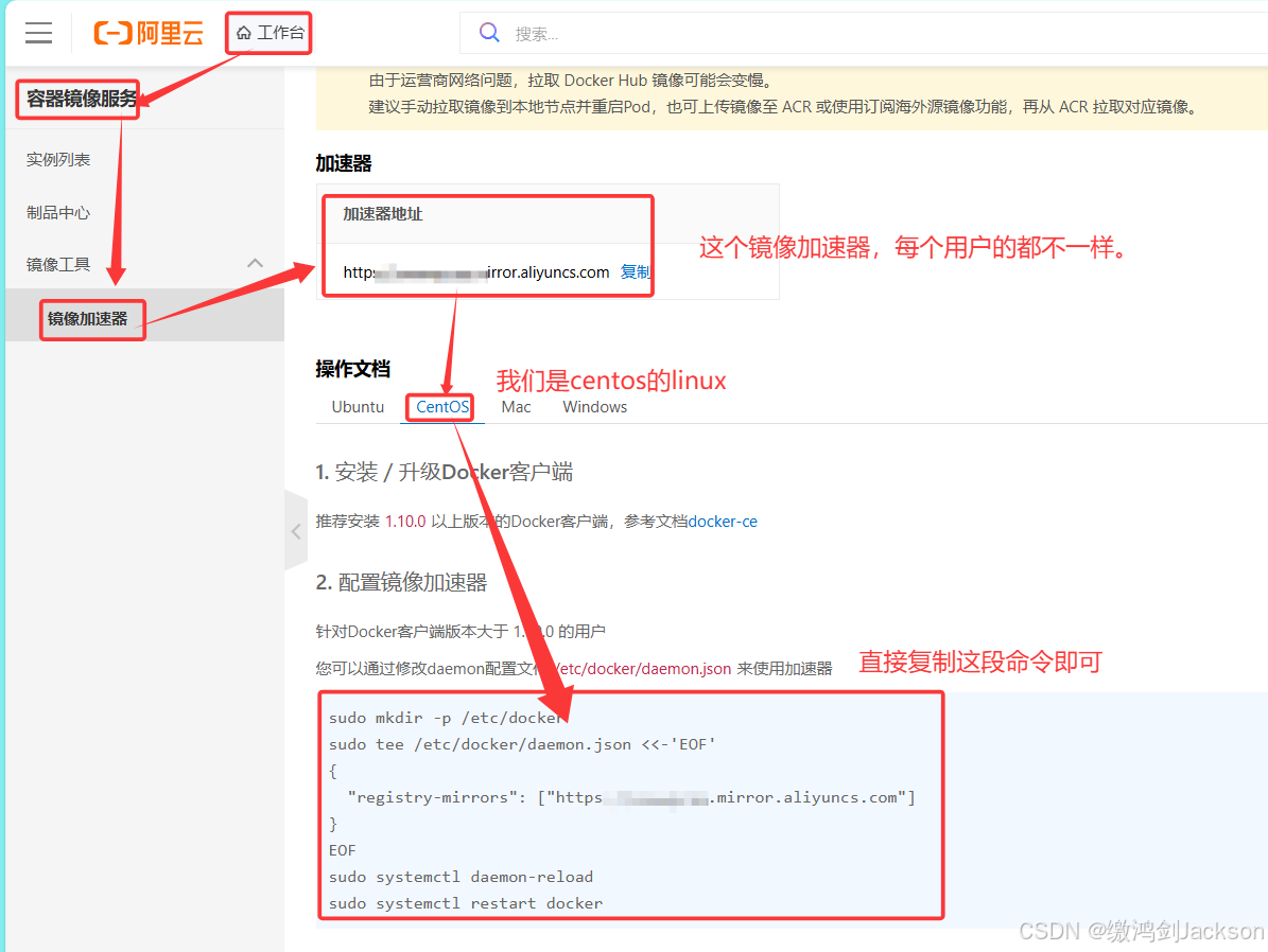 默认情况下,将来从docker hub(https://hub.docker.com/)下载docker镜像,太慢。一般都会配置镜像加速器: