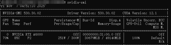 在 batch_size 在 128 的情况下,显存占用约 30.6G,如果你运行显存不足可适当缩小 batch_size 的大小,或者改为梯度累积的方式减少显存需求: