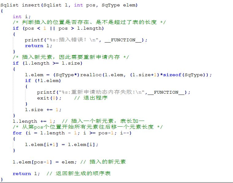Sqlist insert(Sqlist l, int pos, SqType elem); // 插入新元素