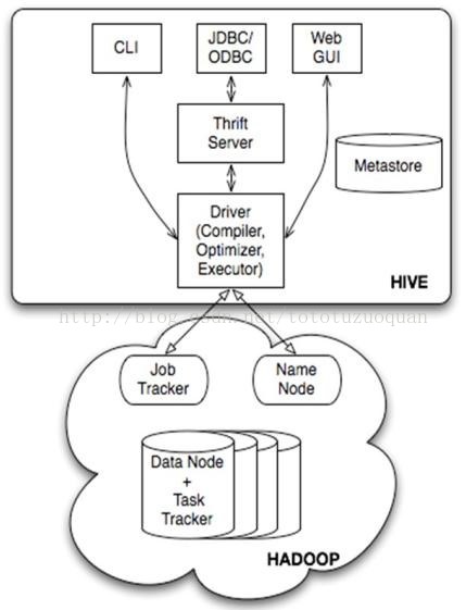 Ø 用户接口主要由三个:CLI、JDBC/ODBC和WebGUI。其中,CLI为shell命令行;JDBC/ODBC是Hive的JAVA实现,与传统数据库JDBC类似;WebGUI是通过浏览器访问Hive。