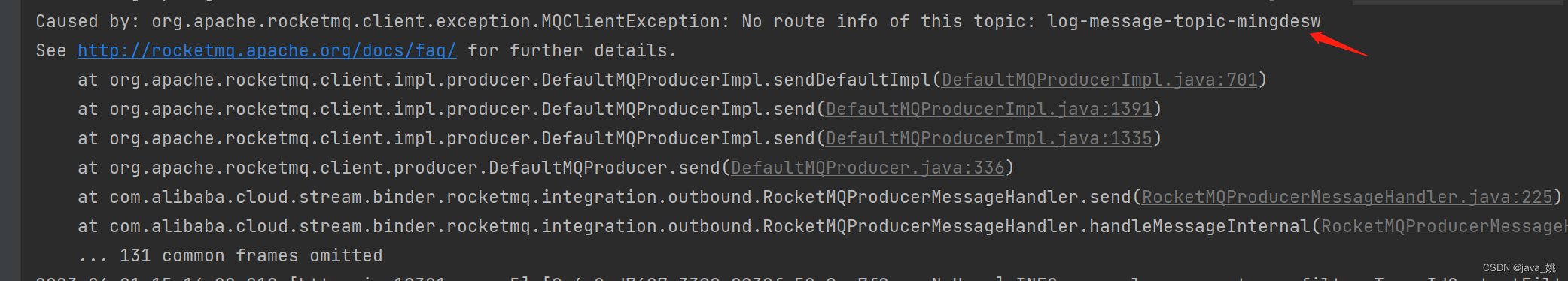 spring boot连接RocketMQ报错:Send [3] times, still failed, cost [573]ms, Topic: log-message-topic-mingdes