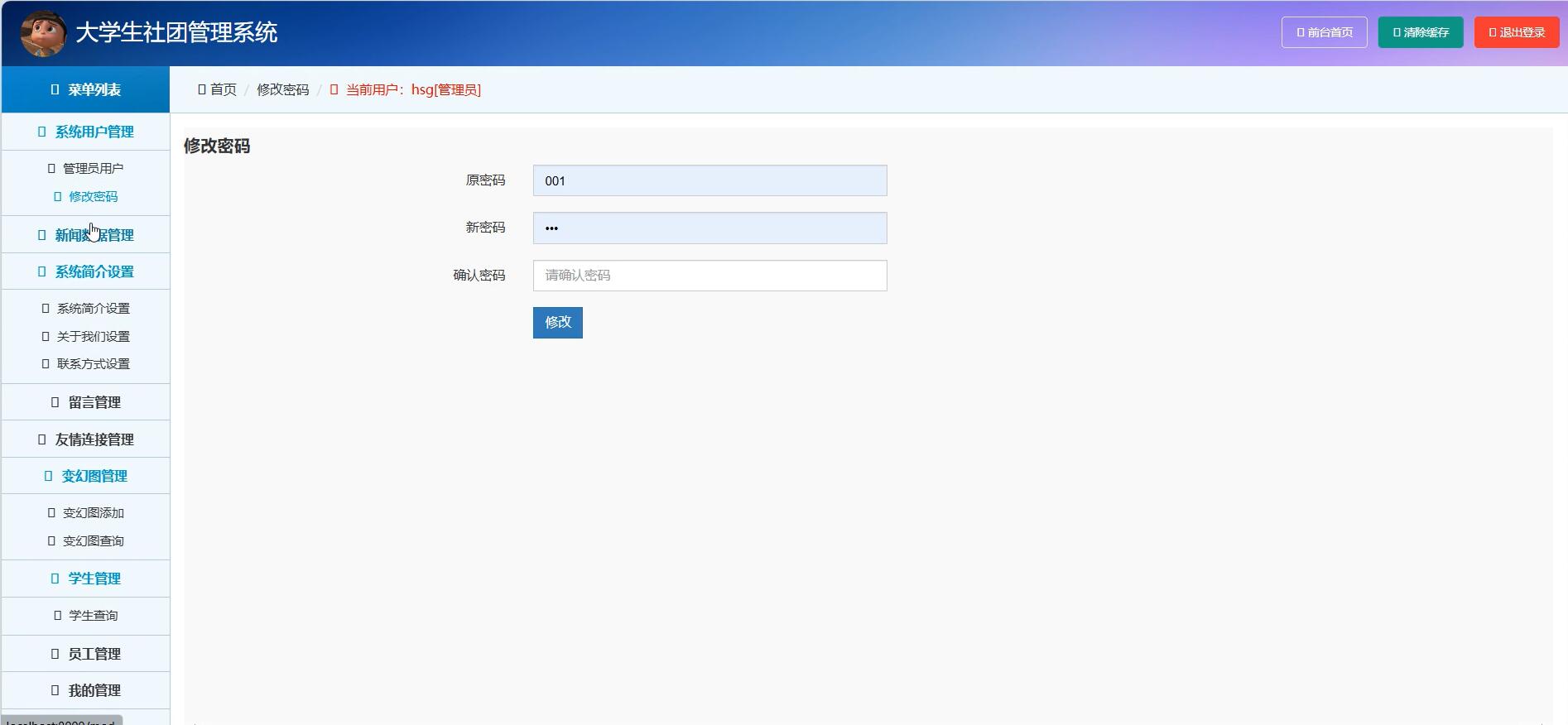 学生和员工管理模块:系统管理员和社团管理人员通过后台管理界面对学生和员工信息进行管理,使用Django的模型操作实现信息的添加、修改和删除功能。