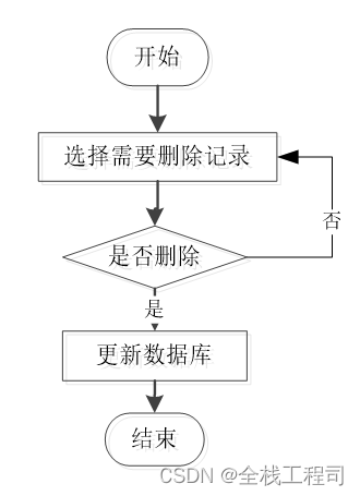 用户选择要删除的信息并单击Delete按钮。系统提示是否删除信息。如果用户想要删除信息,系统将删除信息。系统数据库删除信息。删除信息流程图如图3-5所示。