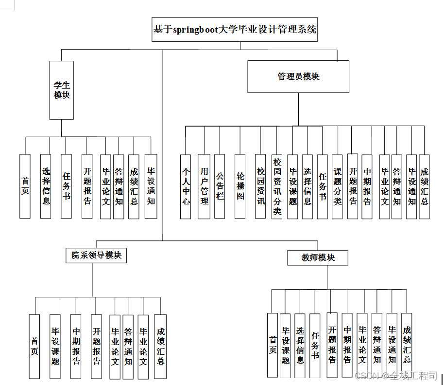 这些功能可以充分满足大学毕业设计管理系统的需求。此系统功能较为全面如下图系统功能结构如图4-3所示。