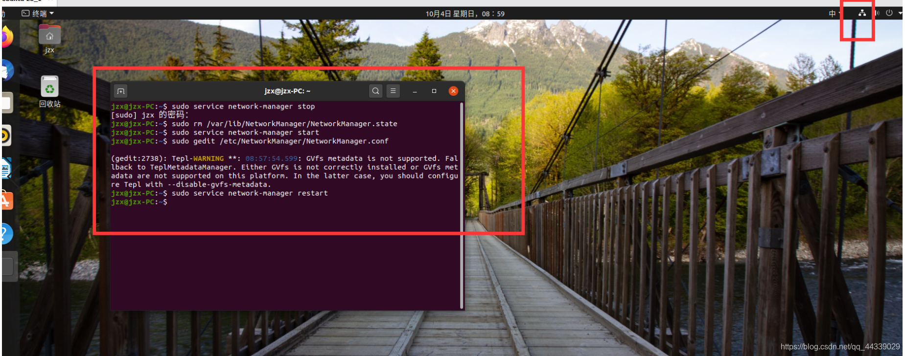 ubuntu右上角的网络连接图标消失解决办法