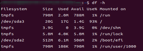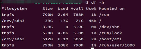 终端输入:df -h