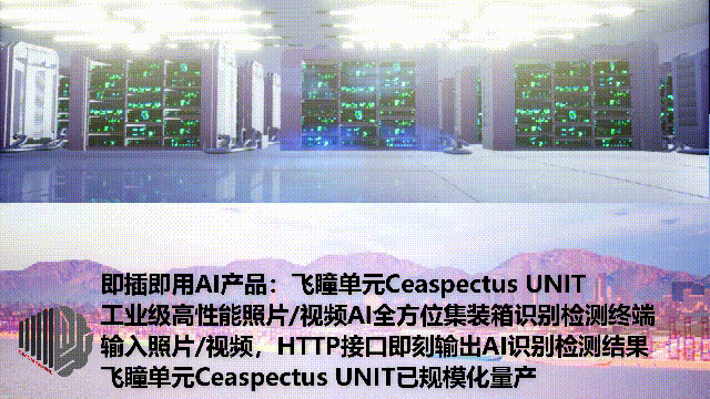 - 即插即用的成熟集装箱识别/集装箱箱况残损检终端解决方案:飞瞳单元Ceaspectus UNIT,150毫秒完成照片集装箱信息识别,识别率99.98%以上,可结合触发装置二次开发或直接使用。飞瞳单元Ceaspectus UNIT成熟集装箱识别/集装箱箱况检终端即插即用,输入照片/视频,HTTP接口即刻输出AI识别检测结果,可二次开发或直接使用。