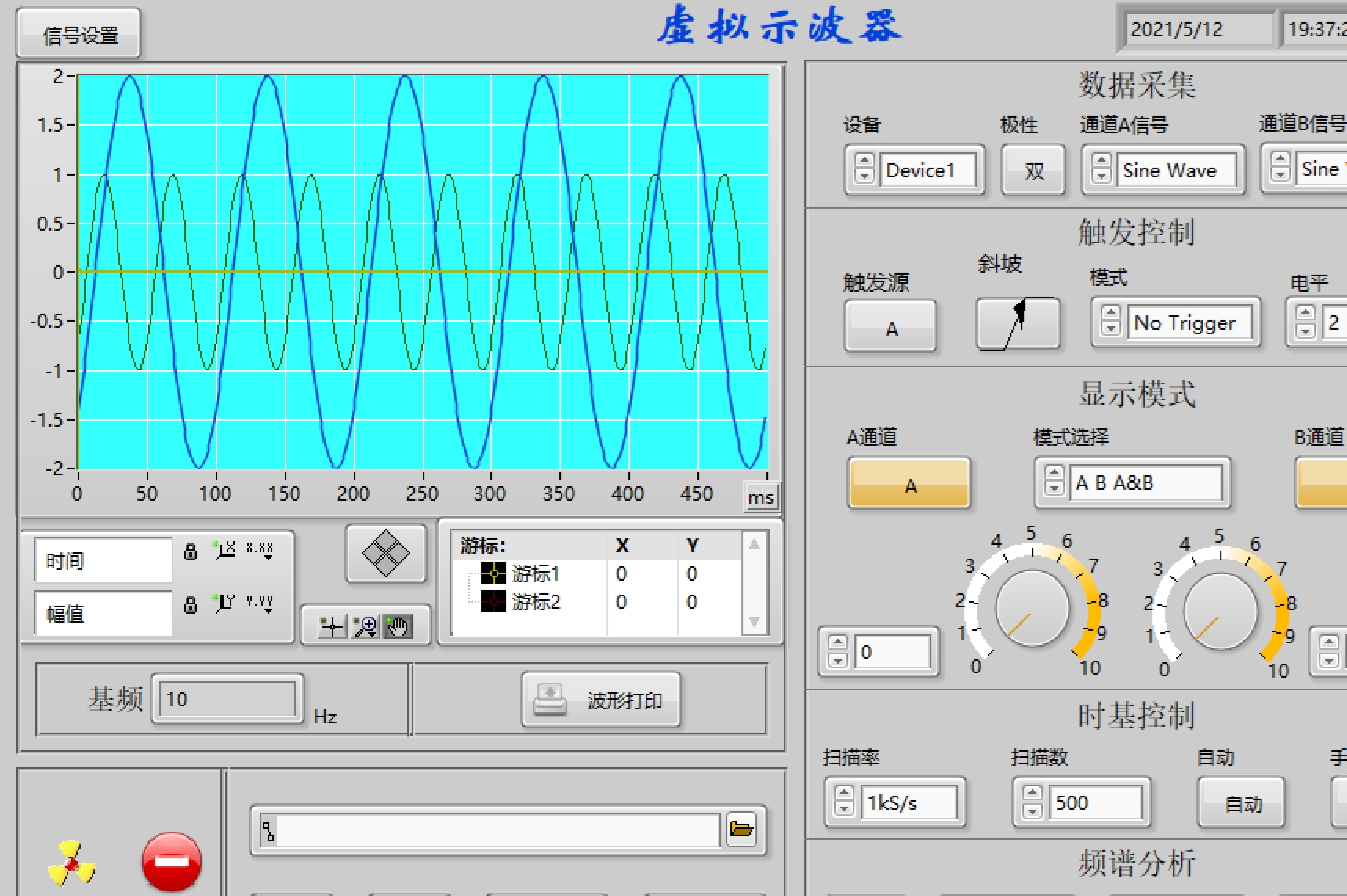Labview双通道虚拟示波器完整程序 实现所有功能!