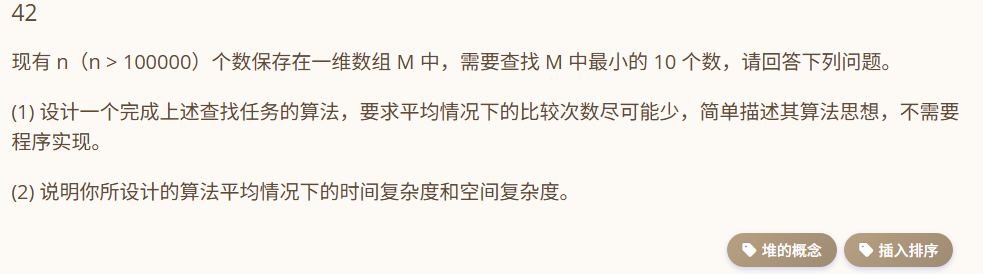 用一个长度为 10 的数组 A 保存最小的 10 个数,初始值为最大数。