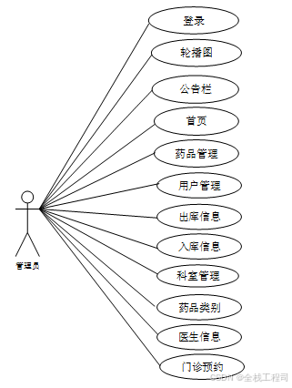 web后台管理上的管理员是维护整个社区门诊管理系统中所有数据信息的。管理员角色用例如图2-5所示。