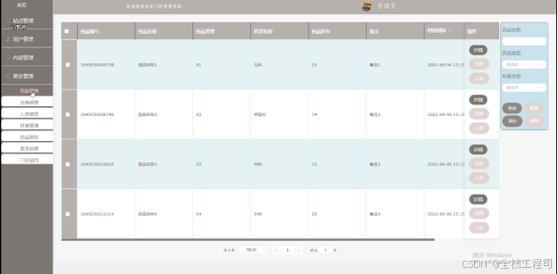 (1)更多管理:管理员可以对社区门诊管理系统中现有的药品进行增删改查。