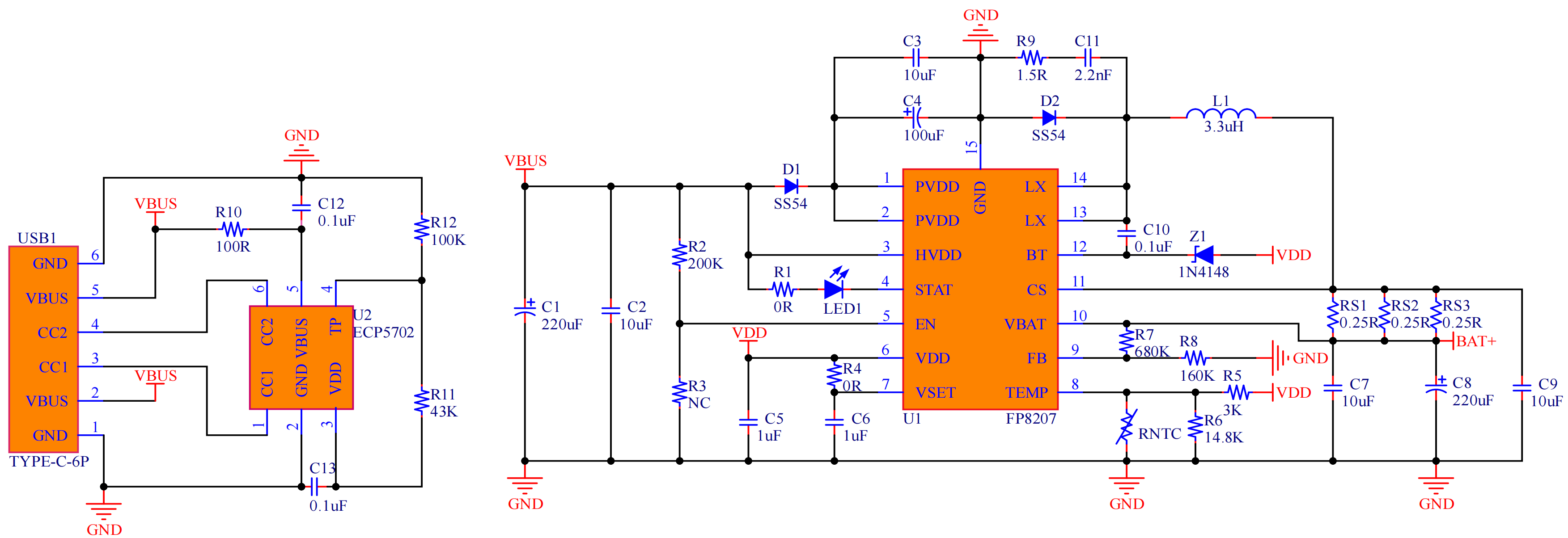 适用于便携设备的PD快充方案:支持1-3节电池,充电电流高达3A(ECP5702+FP8207充电芯片)