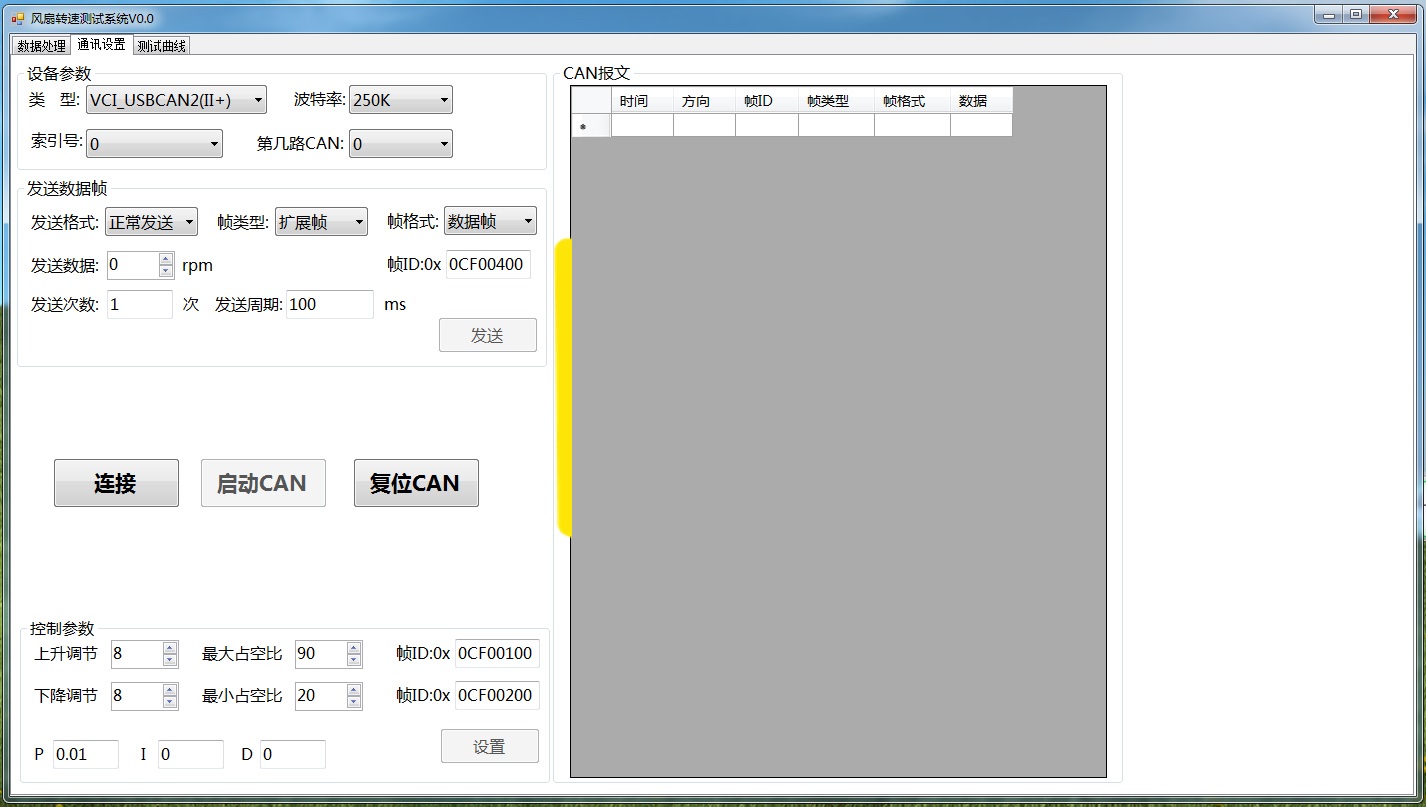 C#Winform开源一个can上位机源码,工控试验源码,通讯源码。 can接口用的周立功的dll文件。 绘图用的zedgrah。 上位机功能是读取历史转速数据,作为控制的目标转速,通过can卡,发送给风扇控制器,复现风扇转速变化趋势。 或者自定义目标转速波形,进行相关可靠性试验。 代码实现了can通讯,excel文件读取,参数标定,曲线实时绘制等功能。 部分代码借鉴了有关大神