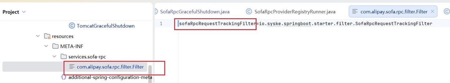com.alipay.sofa.rpc.filter.filter文件必须正确配置:配置的key是@Extension配置的值,value是拦截器的全类名: