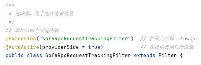 SPI方式注入,且要正确配置@AutoActive和@Extension,需要注意的是@Extension配置的名称要与com.alipay.sofa.rpc.filter.filter文件中配置的名称一致,否则不生效