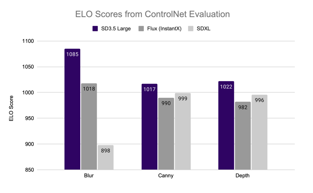 在一项包含约150名参与者的ELO比较研究中,Stable Diffusion 3.5 Large的ControlNet在同类产品中用户偏好排名第一。