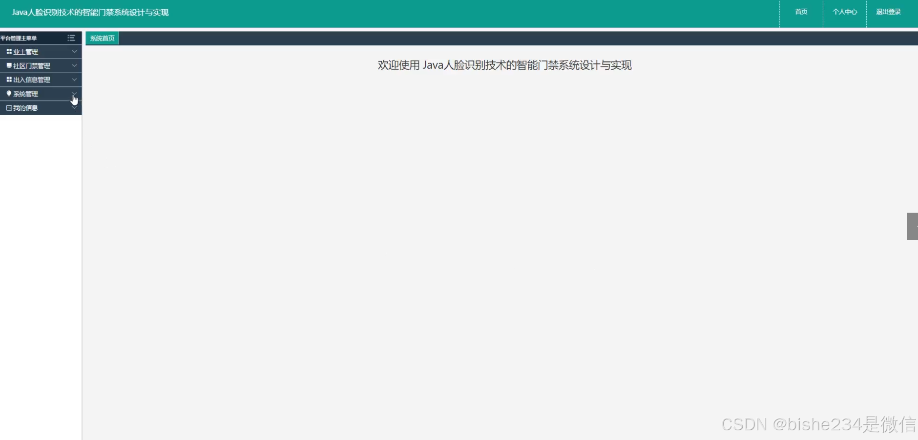 管理员登录进入系统可以查看业主管理、社区门禁管理、出入信息管理、系统管理、我的信息等功能,进行详细操作,详如下图5.8所示: