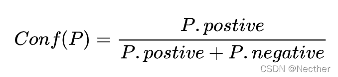易得,前2个字符串为positive,第3个字符串为negative,所以 pattern P 的置信度