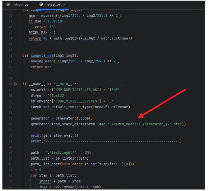 可以直接使用笔者之前训练好的权重去直接测试mytest.py