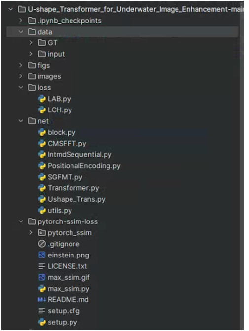 编译器采用Pycharm,拿到代码之后,结合ReadMe以及“requirements.txt”配置好环境之后,可以直接使用预训练的模型去处理水下图像;也可以根据自己的需求重新训练一整个网络模型。