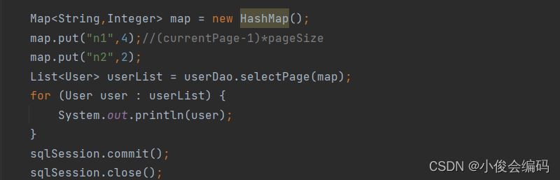 <select id="selectPage" parameterType="Map" resultType="User"> select * from user1 limit #{n1},#{n2} </select>