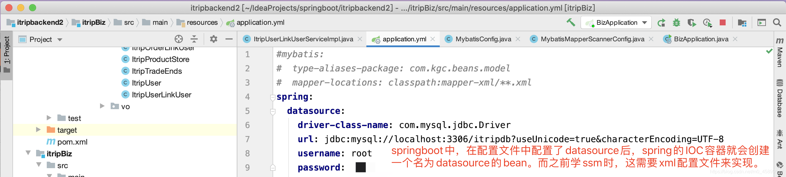 首先在yml配置文件中配置datasource,将datasource注入spring容器。