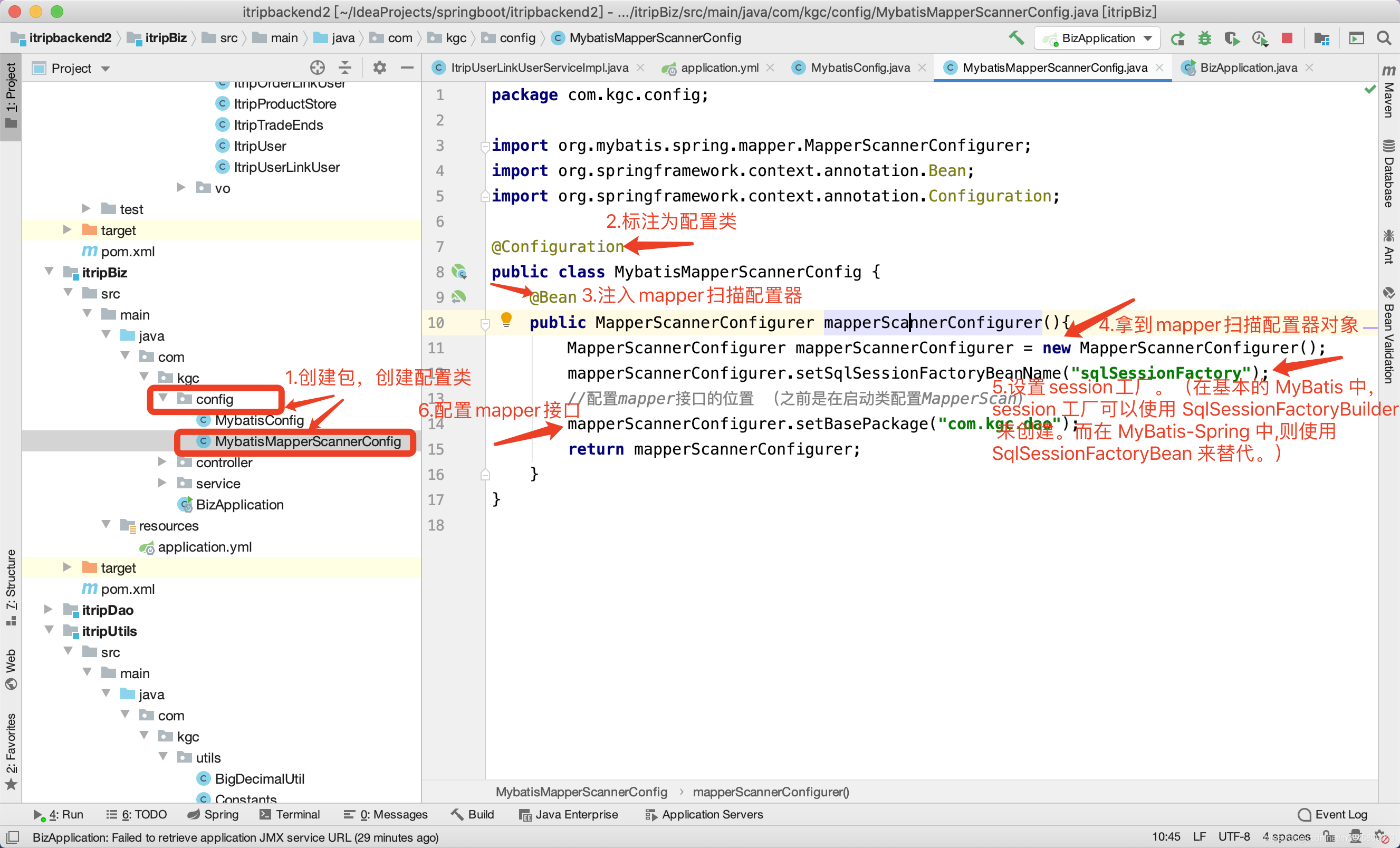 2. 创建Mapper扫描配置类。