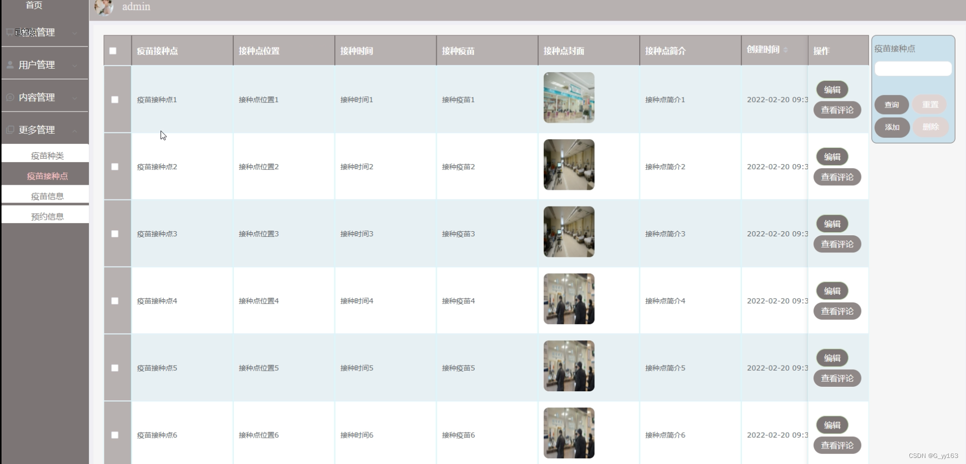 进入疫苗接种点界面,点击某条数据后面的删除按钮 |