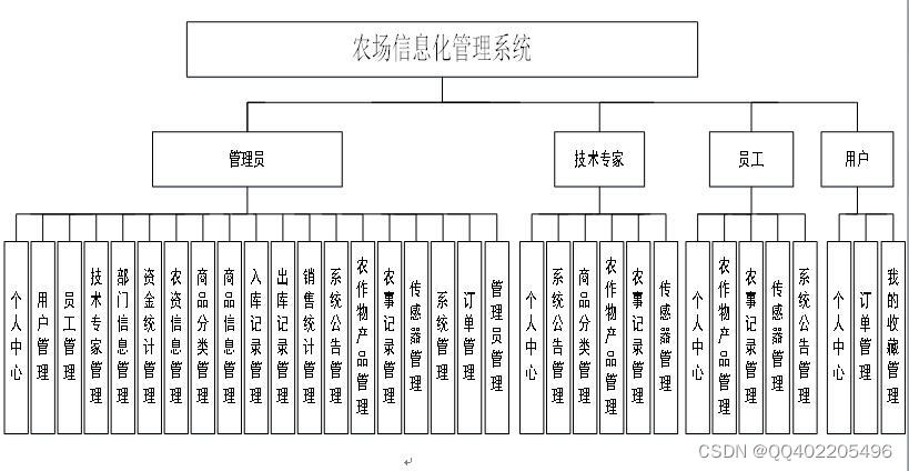 5.每个笔记均有对应源码本农场产品信息化管理系统的设计来说,它主要是采用java语言技术。在整个系统的设计当中它是应用mysql数据库来完成的,具体根据网上农场信息化的现状来进行开发的,具体根据用户需求实现网上农场信息化网络化的管理,各类信息有序地进行存储,进入农场信息化管理系统页面之后,方可开始操作主控界面,系统功能包括前台:首页、商品信息、新闻资讯、我的、跳转到后台、购物车,管理员:个人中心、用户管理、员工管理、技术专家管理、部门信息管理、资金统计管理、农资信息管理、商品分类管理、商品信息管理、入库记录管理、出库记录管理、销售统计管理、系统公告管理、农作物产品管理、农事记录管理、传感器管理、系统管理、订单管理、管理员管理,技术专家:个人中心、系统公告管理、商品分类管理、农作物产品管理、农事记录管理、传感器管理,员工;个人中心、农作物产品管理、农事记录管理、传感器管理、系统公告管理,用户:个人中心、订单管理、我的收藏管理等功能。