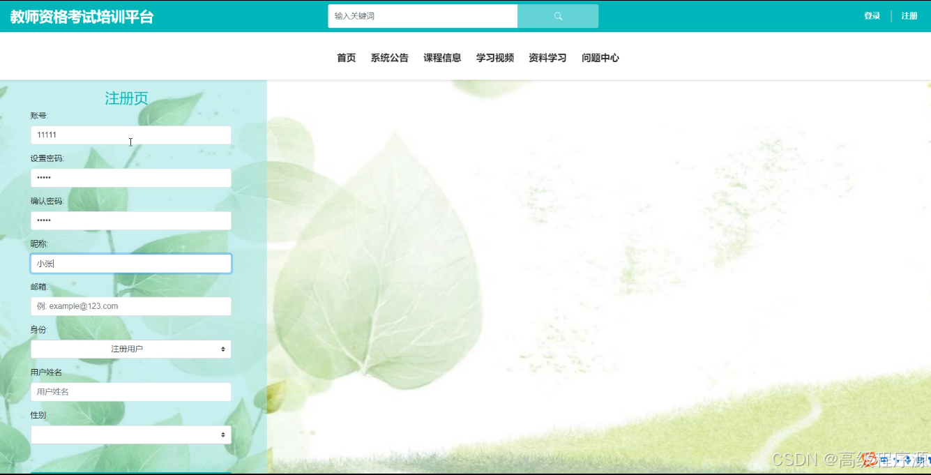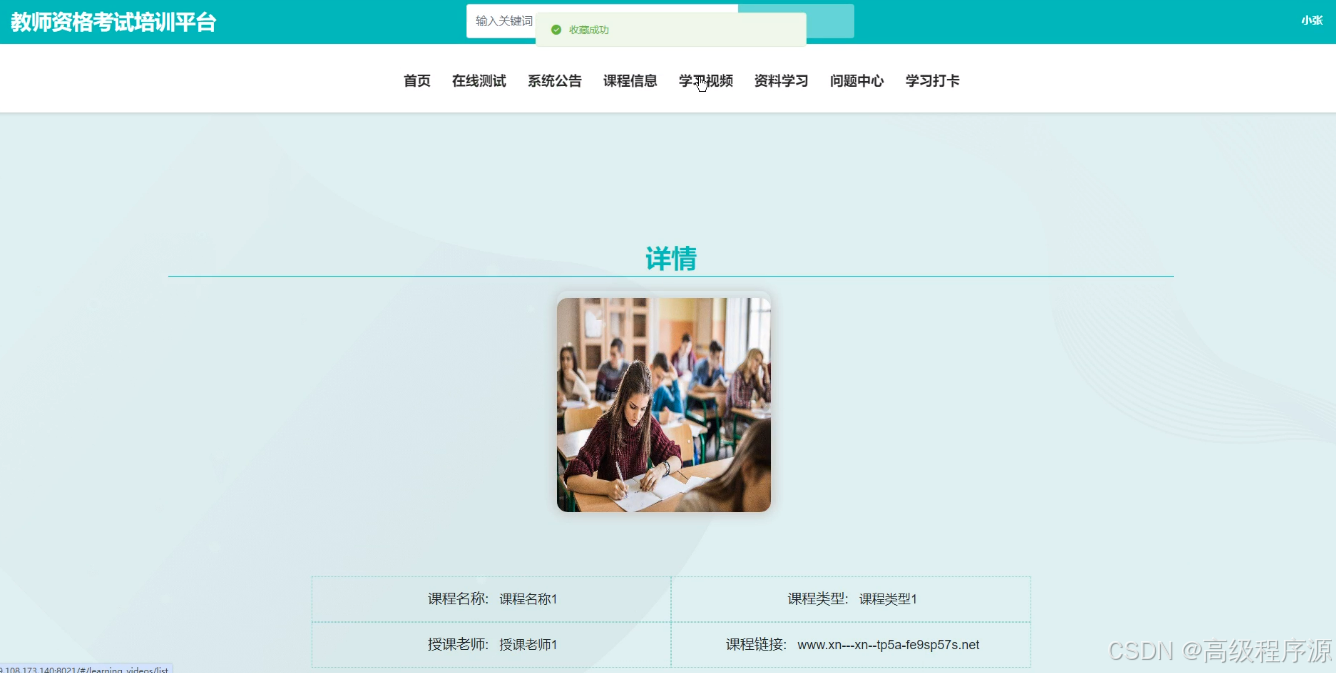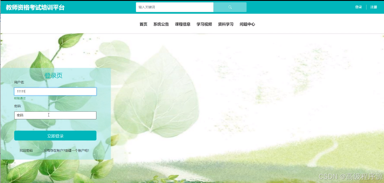关键词:教师资格考试培训平台 ;springboot框架;MySQL数据库.
